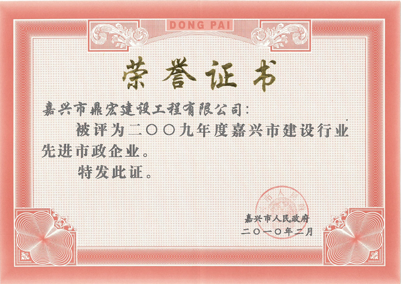 • 2009年嘉興市先進(jìn)市政企業(yè)