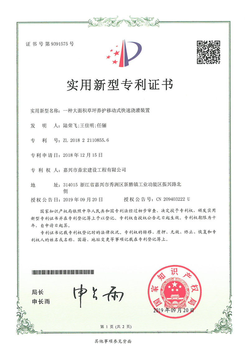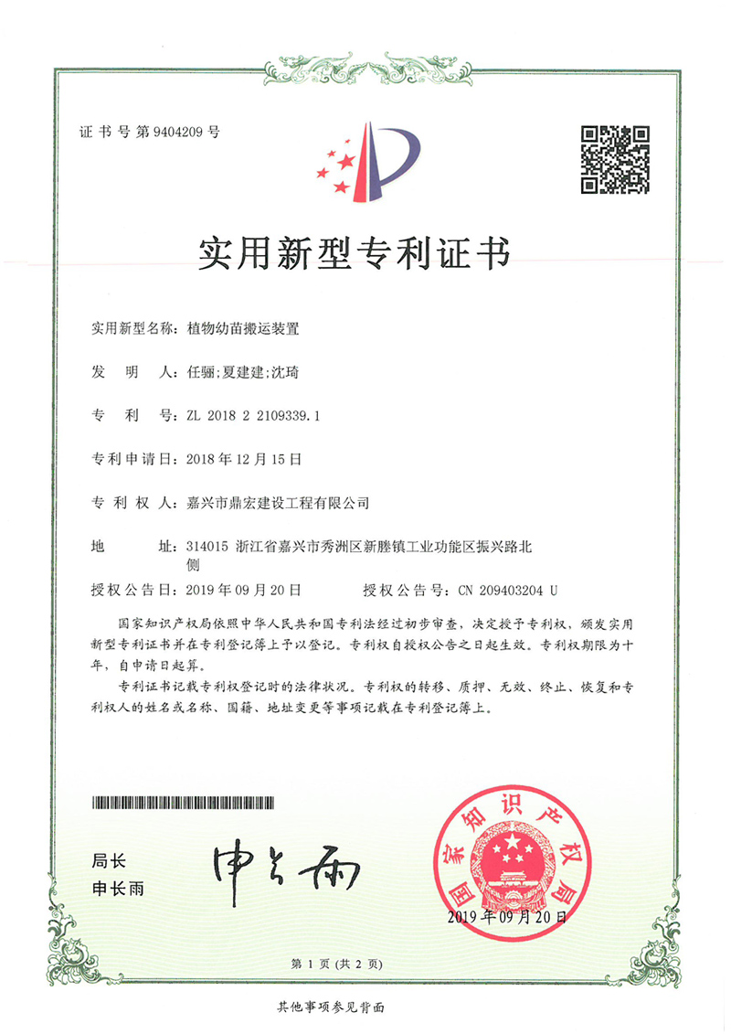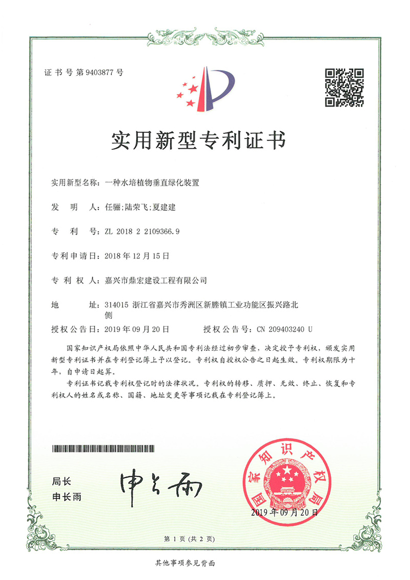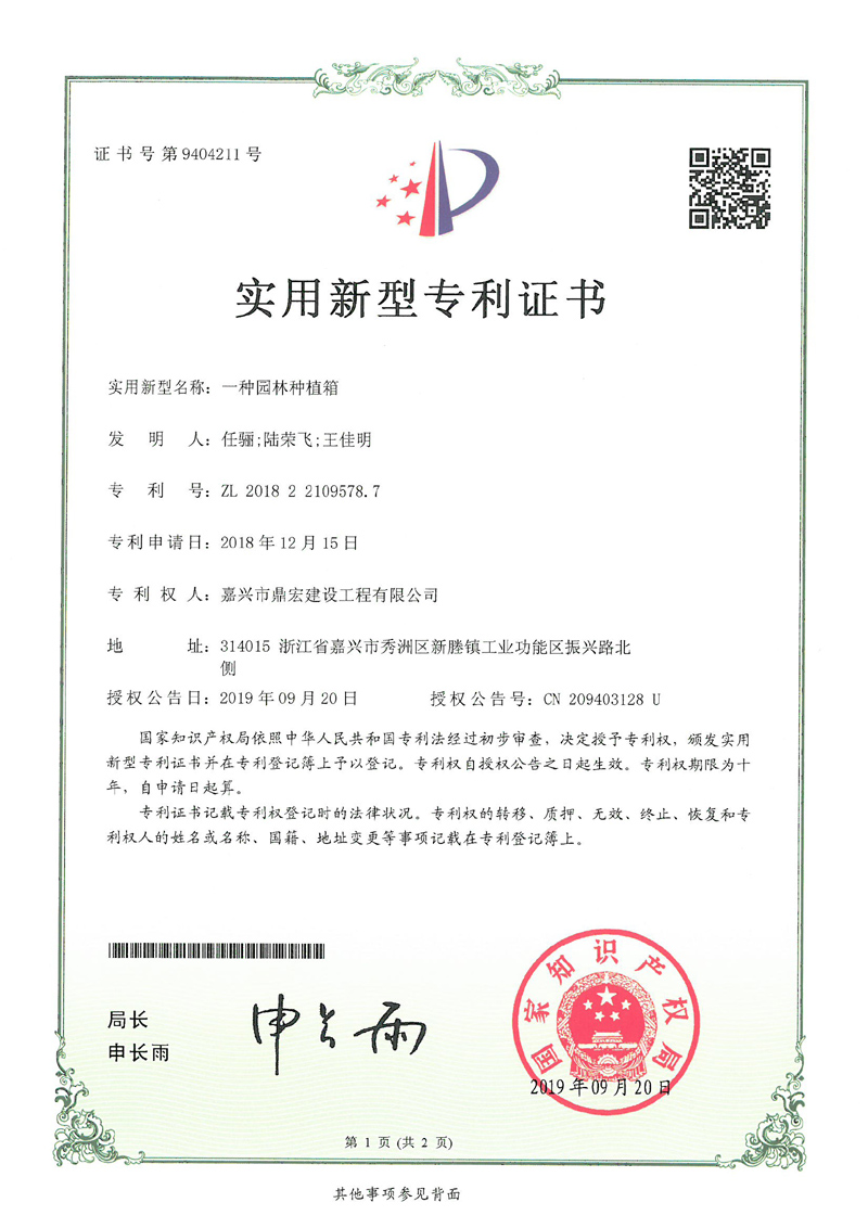 您的位置:主頁 > 企業(yè)榮譽(yù) > 實(shí)用新型專利證書-園林